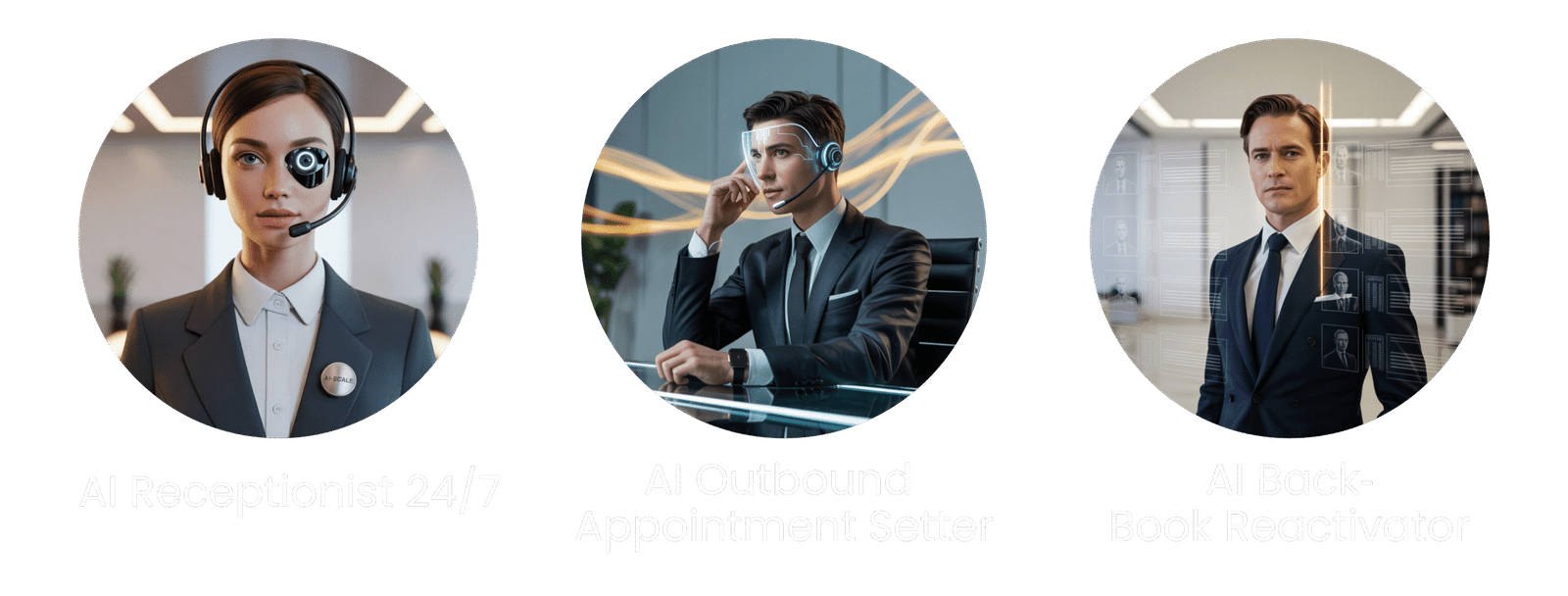 Your 24/7 Receptionist, Outbound Appointment Setter, and Back-Book Reactivator are switched on and working instantly.